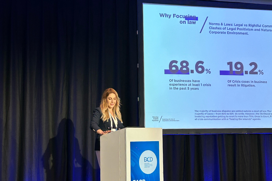 In the last 5 years, 68.6% of businesses had at least one public crisis and 19.2% of these crises resulted in legal proceedings, shared the speaker, mentioning that only 16% of the companies that reported a crisis recovered their reputation.