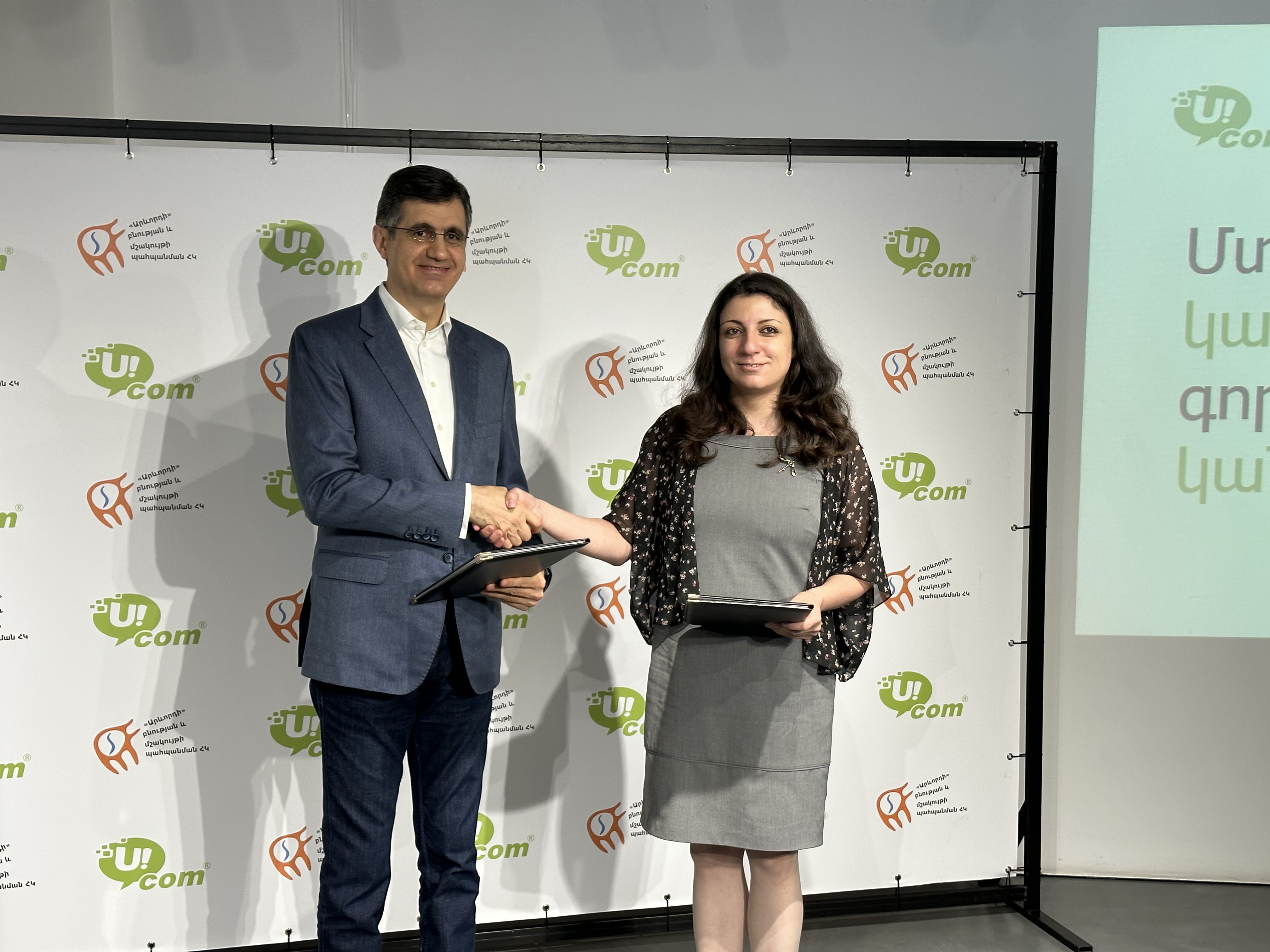 Today, during a joint press conference Ucom CJSC Director General Ralph Yirikian, along with “Sunchild” nature and culture conservation NGO founder Ruben Khachatryan and director Eva Martirosyan, announced the start of a series of environmental projects targeting young people. They also signed a memorandum of understanding. The partnership, carrying the slogan “Think green, act green,” aims to form a continuously empowered, active community of environmentally aware and responsible young people.