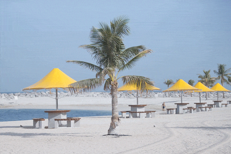 When it comes to paid beach options, Al Mamzar Beach Park in the Deira area emerges as an ideal choice for families and large groups. This unique beach park offers five well-equipped beaches surrounded by verdant palm trees, featuring pedestrian pathways, cycling tracks, sports facilities, an array of cafes, and restaurants. The park also provides a play area and an amphitheater where entertaining events are regularly held. Moreover, you can rent chalets within the park – modern, air-conditioned bungalows with all the amenities required for a comfortable stay.