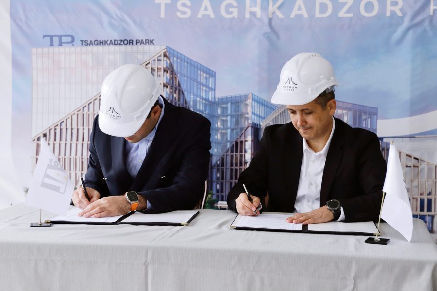 Arman Melkonyan, Executive Director of Metrum Invest, which has gained a great reputation in the Armenian construction scene for its innovative and unique construction solutions, and Edgar Avetisyan, General Director of PROFAL, a leading Armenian company specializing in manufacturing aluminum doors, windows, and glass constructions, signed a memorandum of understanding for an aparthotel with 360-degree views in the center of Tsaghkadzor at the construction site of the complex.