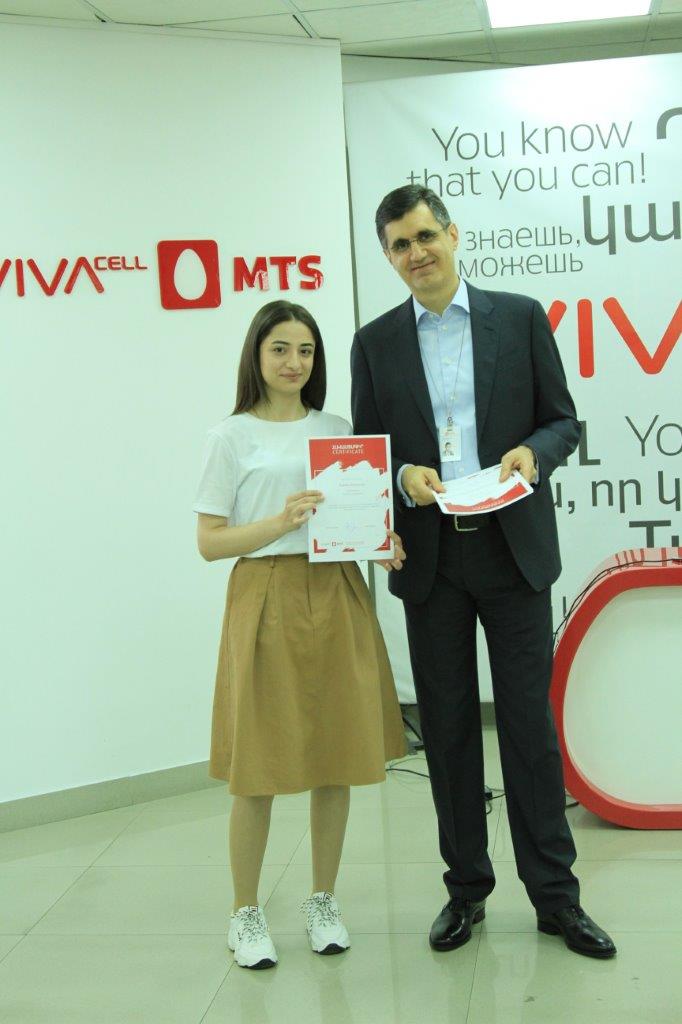 “Our Company views ‘VivaStart’ as an important platform for those at the start of their career. The program is an opportunity to see work processes from inside, get necessary skills and shape tools to independently make decisions, and orient oneself at work. One of the crucial purposes of the course is the development of business communication skills. I congratulate you and believe that the experience you obtained at our Company will be a good starting point in paving your way to success,” VivaCell-MTS General Manager Ralph Yirikian said.