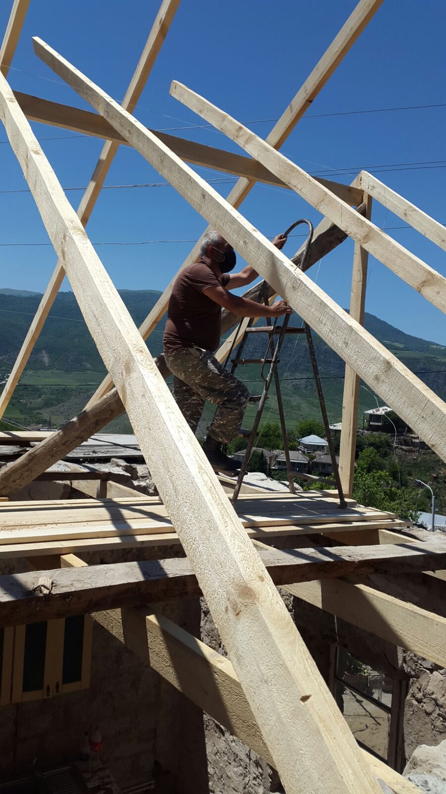 “The old roof is gone! It was really dilapidated. We got rid of it. We are doing important work now. Now only memories remain of the old roof. The new one will be properly done,” said the father of the family, Harutyun Gulakyan.