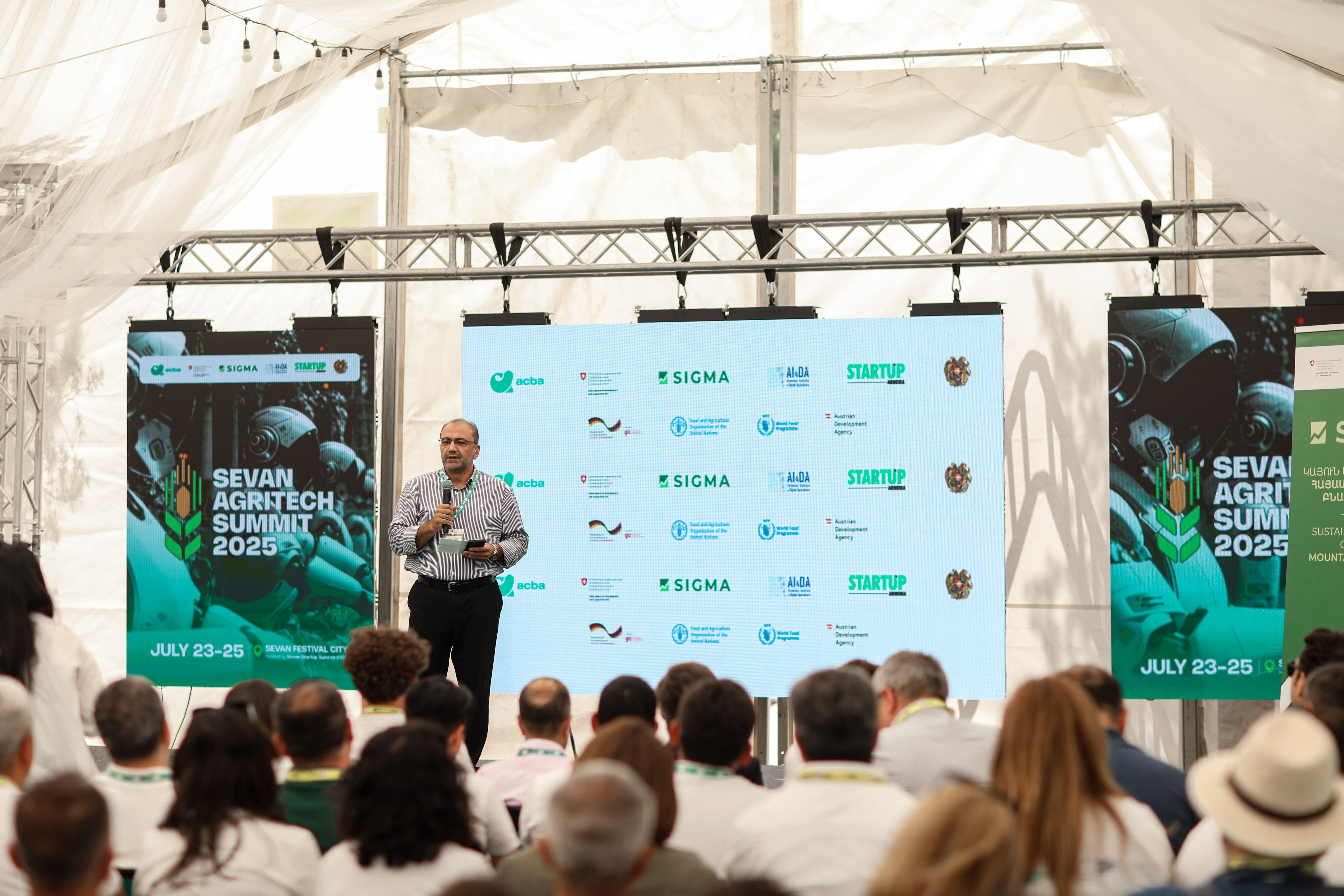 The Sevan Agritech Summit 2025 international forum kicked off in Armenia’s Gegharkunik region on 23 July. The event aims to advance digital and innovative technologies in Armenia’s agricultural sector, fostering connections between stakeholders in the agritech sector as well as promoting agritech entrepreneurship. The summit is organised by the Sustainable and Inclusive Growth in Mountainous Armenia (SIGMA) project, the Armenian Institute for Digital Agriculture (AI4DA), and the Startup Armenia Foundation, in cooperation with Acba Bank, the Food and Agriculture Organization of the United Nations (FAO), the UN World Food Programme (WFP), and the Austrian Development Agency. The Sevan Agritech Summit is part of the Sevan Startup Summit 2025.